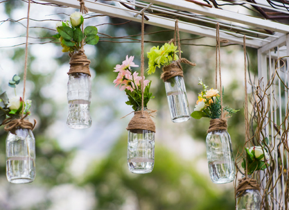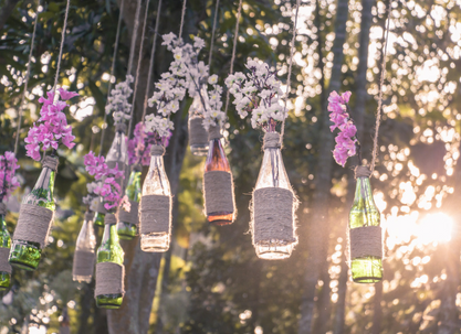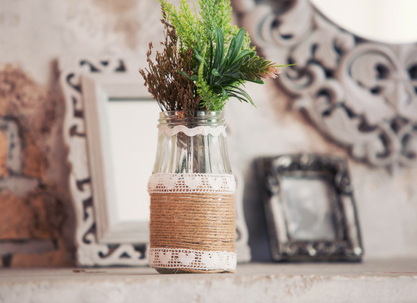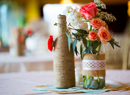 Masz dużo butelek po winie, mleku czy innych napojach lub słoiki? Świetnie! Możesz je również wykorzystać w aranżacji stołowej. Butelki lub słoiki ozdobne wykonasz z pomocą różnych dodatków: koronkowych firanek, wzorzystych materiałów, nici (mulina, włóczka), roślin, taśm, farbek akrylowych. Do tak przygotowanego wazonu włóż ulubione kwiaty – sztuczne lub prawdziwe. Całość będzie stanowić przepiękny element dekoracyjny stołu.
