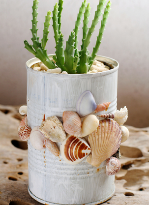 Innym uzupełnieniem dekoracji stołu, ale i przestrzeni wokół niego będą własnoręcznie zrobione doniczki. Zaprezentujesz w nich nie tylko kwiaty - sprawdzą się również jako serwetnik, pojemnik na sztućce lub pieczywo. Tutaj do ozdoby wykorzystaj koronki, materiały, nici, rośliny, taśmy i farbki, ale też muszelki lub kamienie. Samą doniczkę również możesz przygotować samemu – z puszki, starej formy do ciasta, kubków, drewna, gipsu i butelek plastikowych. W przygotowaniu doniczki ogranicza Cię wyłącznie wyobraźnia.