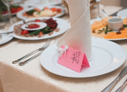 Proste, a zarazem przydatne uzupełnienie stołu. Warto zawczasu pomyśleć o rozsadzeniu gości podczas przyjęcia, by nie doszło do niepotrzebnych kłótni lub wymiany zdań. Winietki możesz przygotować z białego, grubego papieru. Wycinamy prostokąt, zginamy na pół, dekorujemy w dowolny sposób (gotowymi dodatkami lub naklejkami), wpisujemy imię i gotowe. Jeśli to przyjęcie urodzinowe lub spotkanie w ogrodzie możesz wydrukować na białym papierze gotowy wzór – z modnymi ostatnio flamingami, ananasami, kaktusami i również wyciąć.