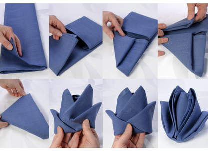 Obowiązkowym wystrojem stołu są również serwety bankietowe. Dzięki pomysłom DIY zaskoczysz gości ich niesamowitą prezentacją. Nie musisz zwijać jej wyłącznie w rulon. Wykaż się kreatywnością i przygotuj proste wzory jak korona, wachlarz czy też wymagające większej zwinności – orchideę, motyla, kwiat lotosu, lilię czy różę. Jesteśmy przekonani, że im częściej będziesz tworzyć serwetkowe dzieła, tym bardziej będą zachwycać.