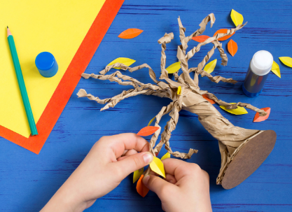 Oryginalną dekoracją staną się liście włożone do pustych ramek na zdjęcia, powieszone na ścianie lub postawione na komodzie. Doskonałym zajęciem na wspólny wieczór może stać się zrobienie drzewek z papieru pakowego, kartoniku i kolorowego papieru.