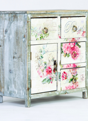 Shabby chic to kolory pastelowe. Pudrowy róż, zgaszona lub w odcieniu kości słoniowej biel, beż, błękit nadadzą łagodności i elegancji każdemu wnętrzu. Ideą tego stylu jest postarzanie mebli. Mogą to być autentyczne antyki bądź meble współczesne, pomalowane specjalną techniką, która wymaga nałożenia kilku warstw farby i lekkiego przetarcia. Spod takich warstw może wyłaniać się błękit, szarość lub złoto. Ten styl nie boi się delikatnych pęknięć, zacieków i niedomalowań. Tak zamierzony efekt doda tylko charakteru i oryginalności wnętrzu. Często używaną metodą zdobienia jest decoupage, czyli nanoszenie kwiatowych ornamentów na meble, doniczki, drewniane szkatułki. Florystyczny wzór dobrze sprawdzi się na porcelanie, zasłonach, poduszkach i obrusach. Koronki, falbany i naturalne materiały jak pomalowane rattanowe lub metalowe krzesła, pomogą stworzyć klimat całego wnętrza. Shabby chic też nie lubi przesady. Zbyt duża ilość kolorów pastelowych i kwiatowych motywów może przytłoczyć wnętrze i wprowadzić do niego zbyt duży chaos.