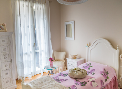 Styl shabby chic doskonale sprawdza się w sypialni i w pokojach dziewczynek. Białe meble, pastelowe ściany beżowa pościel lub kwiatowa narzuta oraz poduszki spodobają się małym dziewczynkom i dorosłym kobietom. Buduarowy styl warto podkreślić poprzez zasłony, dywan i koc w spójnej stylistyce.
