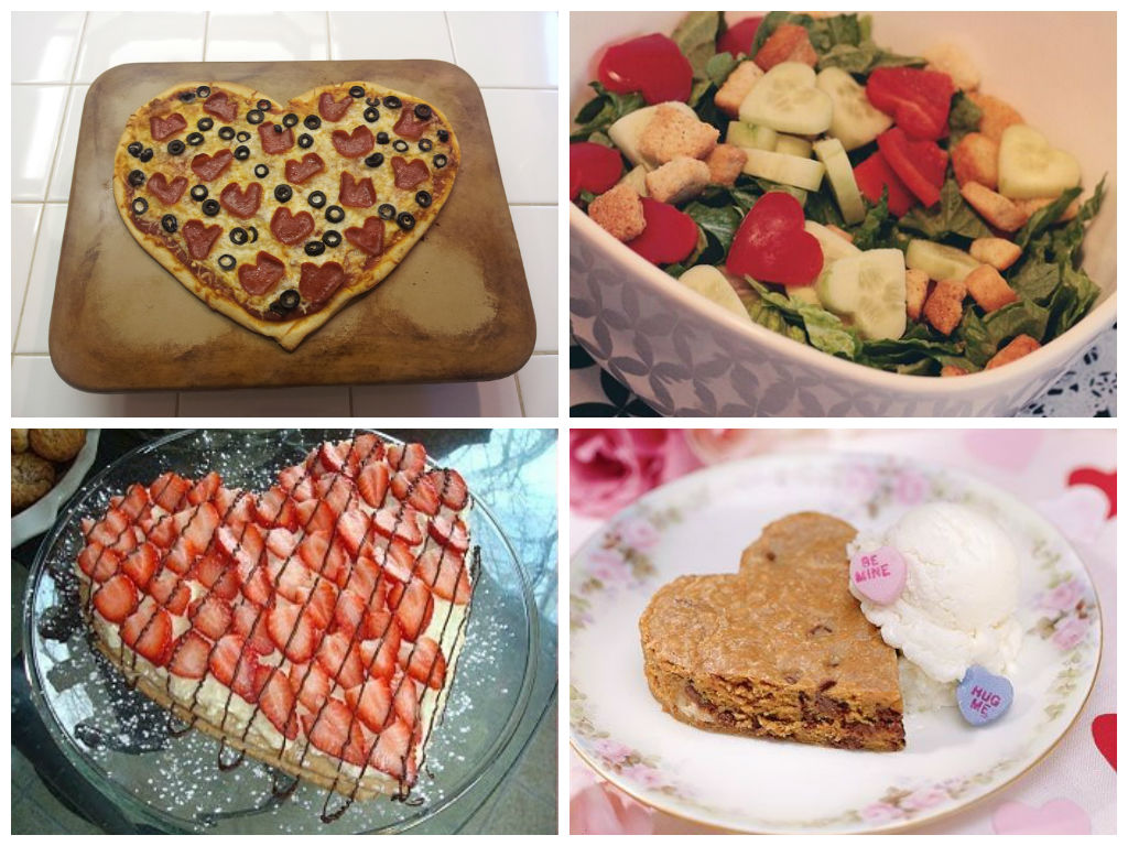 ![]() | Jednym z elementów wystroju mogą być także przygotowane własnoręcznie dania. Nawet standardowe spaghetti można ułożyć w kształcie serca. Poza tym wiele składników w sałatce, pizzy czy innych daniach także można dostosować do walentynkowej aranżacji |