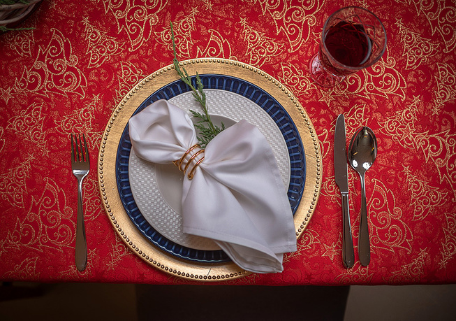 Tkanina żakardowa: Szlachetny splot nadaje materiałowi luksusowego charakteru, a jednocześnie sprawia, że obrus jest niezwykle trwały i odporny na zużycie.