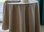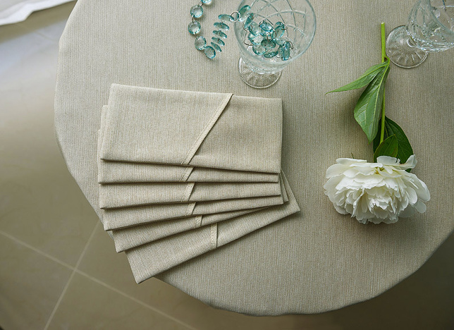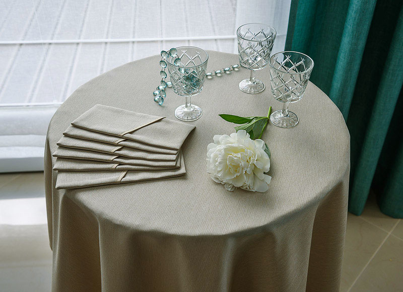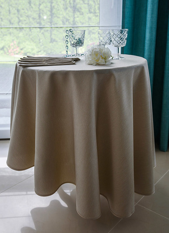 Obrus z Kolekcji Frozen w beżowym kolorze ma zmrożony blask i elegancję. Prezentuje się bardzo dobrze w wielu wnętrzach o nowoczesnym i klasycznym charakterze. Ożywia i dodaje im bardzo wytwornego charakteru. Będzie piękną ozdobą stołu w salonie, w jadalni lub w restauracji.