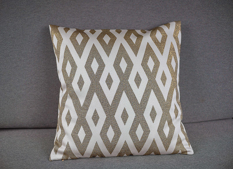 Poszewka dekoracyjna Frozen Design w kolorze złoto-beżowym o designerskim charakterze, przyciągnie wzrok i doda nowoczesnego charakteru stylizacji w salonie, w sypialni, na tarasie lub w ogrodzie.