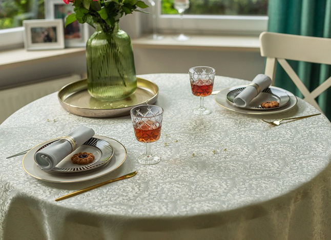 • Trójwymiarowy efekt wzoru – subtelne zdobienia tworzą głębię, dodając obrusu efektowności i ekskluzywnego wyglądu.