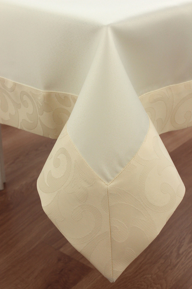 Elegancki i klasyczny, a zarazem bardzo praktyczny kreemowy obrus plamoodporny Bella. Doskonale sprawdzi się jako wykończenie każdego stołu w jadalni, w kuchni, jak i w restauracji.
