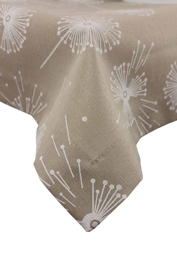 Nowoczesny, plamoodporny obrus Dmuchawce Cappuccino sprawdzi w wielu aranżacjach, o każdej porze roku.