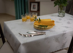 Obrus wykończony jest subtelnym wypaleniem typu "fala".