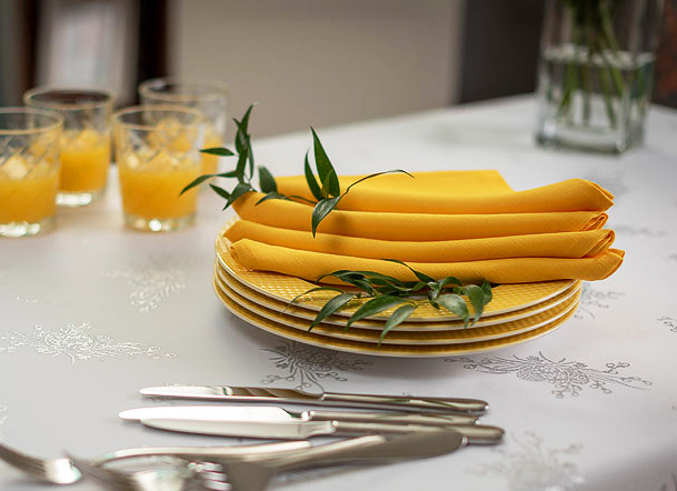 Aby obrus dobrze się prezentował na stole, warto zadbać o dobór odpowiedniego rozmiaru obrusu (standardowo na zwis tkaniny przyjmuje się po ok 20cm z każdej strony blatu). Ponieważ typowe rozmiary nie zawsze będą idealnie pasowały - proponujemy skorzystanie z WYMIARU NIESTANDARDOWEGO. Więcej informacji w dziale PORADY, który zachęcamy odwiedzić przed złożeniem zamówienia.