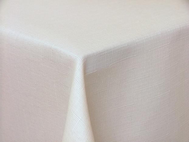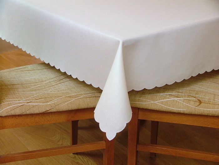 Elegancki, a zarazem bardzo praktyczny biały obrus plamoodporny z Kolekcji Len z efektowną "falą", doskonale sprawdzi się jako dekoracja stołu w jadalni, w salonie, w kuchni, jak i w restauracji.