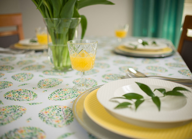 Aby obrus dobrze się prezentował na stole, warto zadbać o dobór odpowiedniego rozmiaru obrusu (standardowo na zwis tkaniny przyjmuje się po ok 20cm z każdej strony blatu). Ponieważ typowe rozmiary nie zawsze będą idealnie pasowały - proponujemy skorzystanie z WYMIARU NIESTANDARDOWEGO. Więcej informacji w dziale PORADY, który zachęcamy odwiedzić przed złożeniem zamówienia.