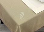 Dzięki pokryciu plamoodpornemu rozlane płyny nie wnikają w głąb tkaniny, tylko tworzą na powierzchni obrusu krople, które łatwo można zebrać, np. za pomocą czystej ściereczki. Plamoodporna apretura sprawi, iż łatwiej będzie nam utrzymać obrus w czystości i dłużej będziemy się cieszyć pięknym wyglądem obrusu.