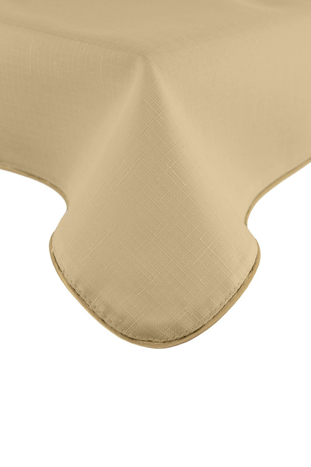 Nowoczesny, a zarazem bardzo praktyczny obrus plamoodporny, w kolorze kremowym z Kolekcji Len będzie doskonałą ozdobą stołu w domu i w restauracji, podczas zwykłych i odświętnych okazji. Obrus jest ozdobiony niezwykle elegancką, złotą wypustką.