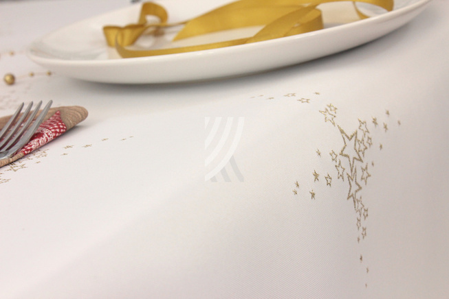 Obrus z Kolekcji Gwiazdki Złote jest niezwykle strojny i wytworny. Obrus ma ciekawy wzór z kaskadami gwiazdek, rozrzuconych na całości. Ten motyw sprawdzi się doskonale w świątecznej stylizacji stołu.