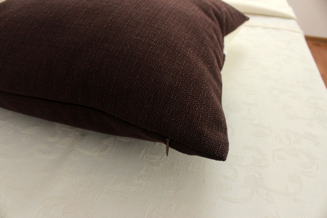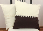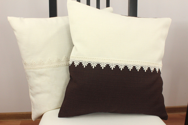 Poszewka dekoracyjna w kolorze kremo-brązowym, z wstawką z gipiury. Tylnia strona poszewki kremowa.