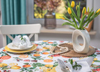To doskonały wybór dla osób, które kochają świeże, naturalne motywy i energetyczne barwy. Obrus wnosi do wnętrza słoneczną atmosferę południowej Europy, ożywiając każdy posiłek swoim radosnym charakterem.