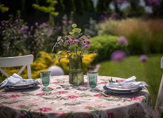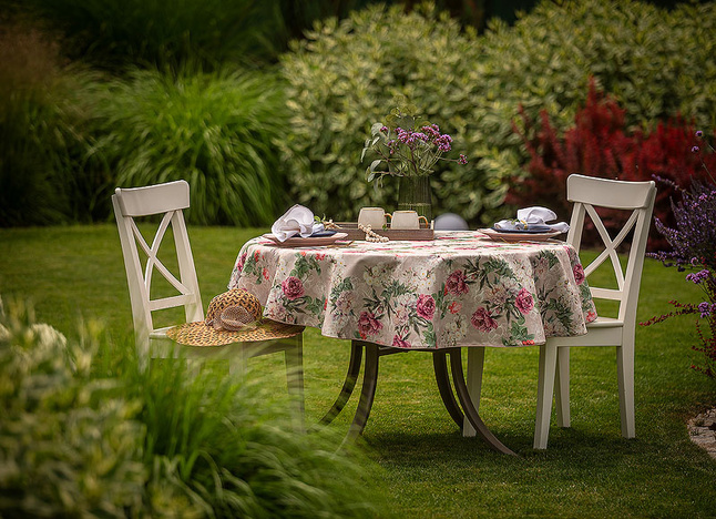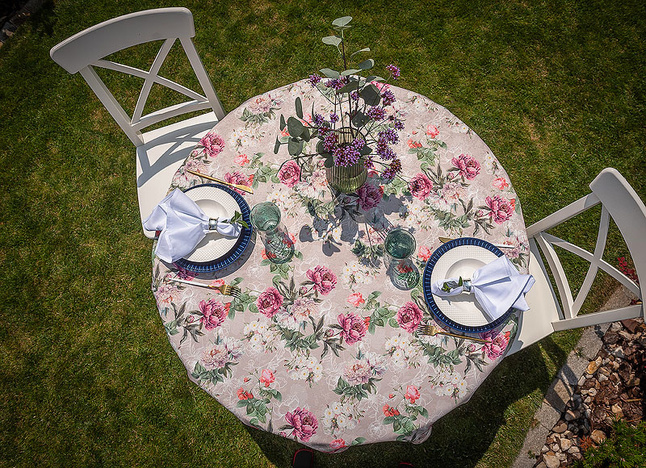• Łatwa pielęgnacja: Tkanina nie wymaga krochmalenia ani maglowania. Można ją prać w pralce i łatwo wyprasować – nawet po wielu praniach obrus zachowuje intensywność kolorów i właściwości plamoodporne.