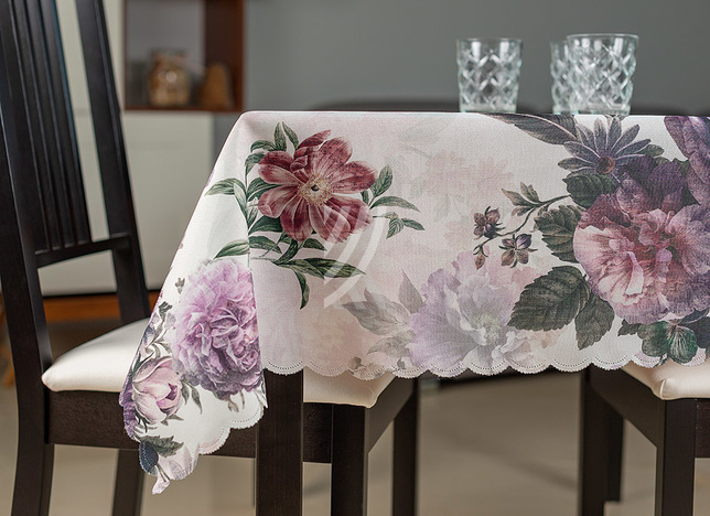 Obrus z Kolekcji Flowers w pięknych kolorach. Motywy kwiatowe zrobią wrażenie i nadadzą charakteru stylizacji stołowej. Obrus doskonale nadaje się na stoły w domu, w przydomowym ogrodzie lub na tarasie. Obrus zaprezentuje się pięknie w klasycznych i nowoczesnych aranżacjach z dodatkami z tym samym wzorem lub z innych jednokolorowych Kolekcji, dających efekt pasujących uspokająjących całą aranżację barw.