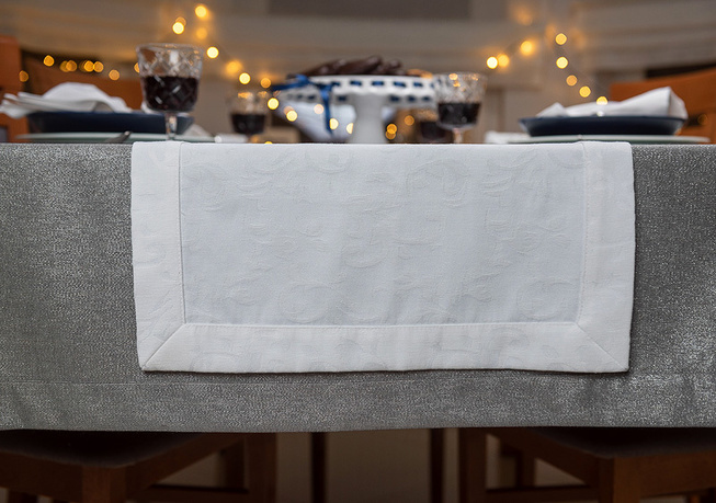 Obrus ma delikatnie plecioną fakturę i może być dwustronny. Lśni zawsze inaczej, w zależności od sztucznego światła i nasłonecznienia. Wygląda bardzo korzystnie, bo ma wiele odsłon i możliwości aranżacji. Będzie wspaniałą propozycją dla osób, które podchodzą praktycznie i artystycznie do stylizacji swojego stołu.