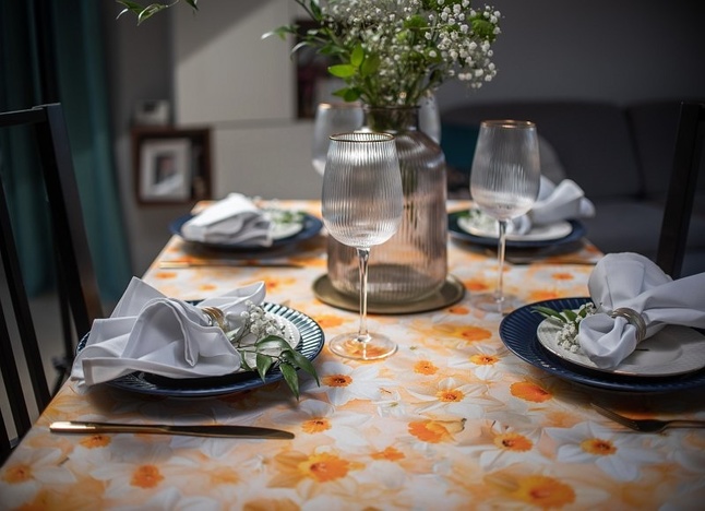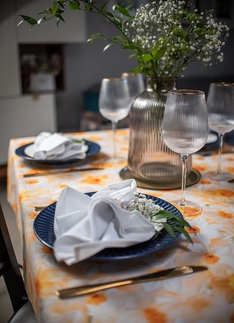 Obrus Słoneczne Narcyzy to propozycja dla tych, którzy lubią jasne, pełne światła aranżacje stołu. Wprowadza do wnętrza ciepło, naturalne piękno i radosny nastrój wiosny – sprawiając, że każdy posiłek staje się chwilą spokoju i przyjemności przy pięknie nakrytym stole.