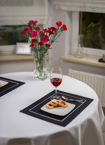 Dzięki pokryciu plamoodpornemu rozlane płyny nie wnikają w głąb tkaniny, tylko tworzą na powierzchni obrusu krople, które łatwo można zebrać, np. za pomocą czystej ściereczki. Plamoodporna apretura sprawi, iż łatwiej będzie nam utrzymać obrus w czystości i dłużej będziemy się cieszyć pięknym wyglądem obrusu.