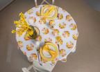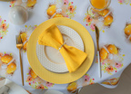 • Eleganckie Wykończenie: Obrus zakończony jest ozdobnym wykończeniem w postaci żółtej wypustki, która idealnie komponuje się z kolorystyką tkaniny,