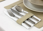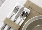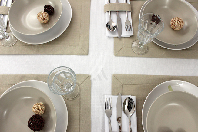 Szykowna podkładka z Kolekcji Len Natura, wykończona szeroką ramką ma prostą elegancję. Sprawdzi się w stylizacjach podczas zwykłych spotkań przy stole, jak i na uroczystych przyjęciach w domu i w restauracji.