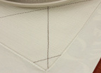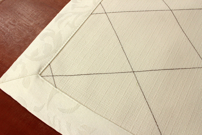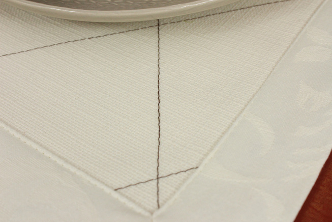 Podkładka jest starannie odszyta, wykonana z połączenia dwóch warstw tkanin, co nadaje jej masywności, sztywności i powoduje, że dobrze się ona prezentuje na stole. Dodatkowego uroku dodaje podkładce subtelne pikowanie jej środka brązową nicią.